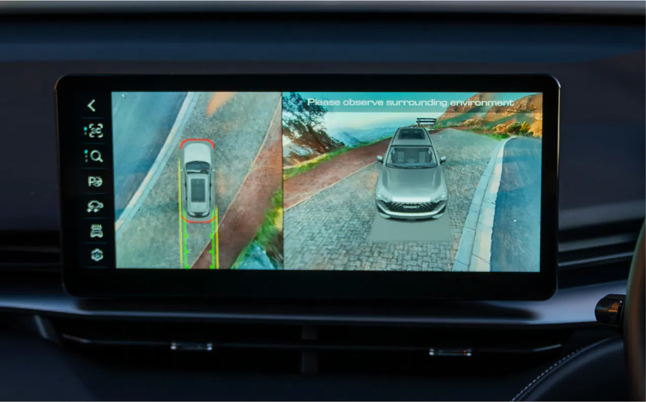 - With four wide-angle cameras set up on the front and back, right and left of the vehicle, the 360HD view ensures zero blind spots.